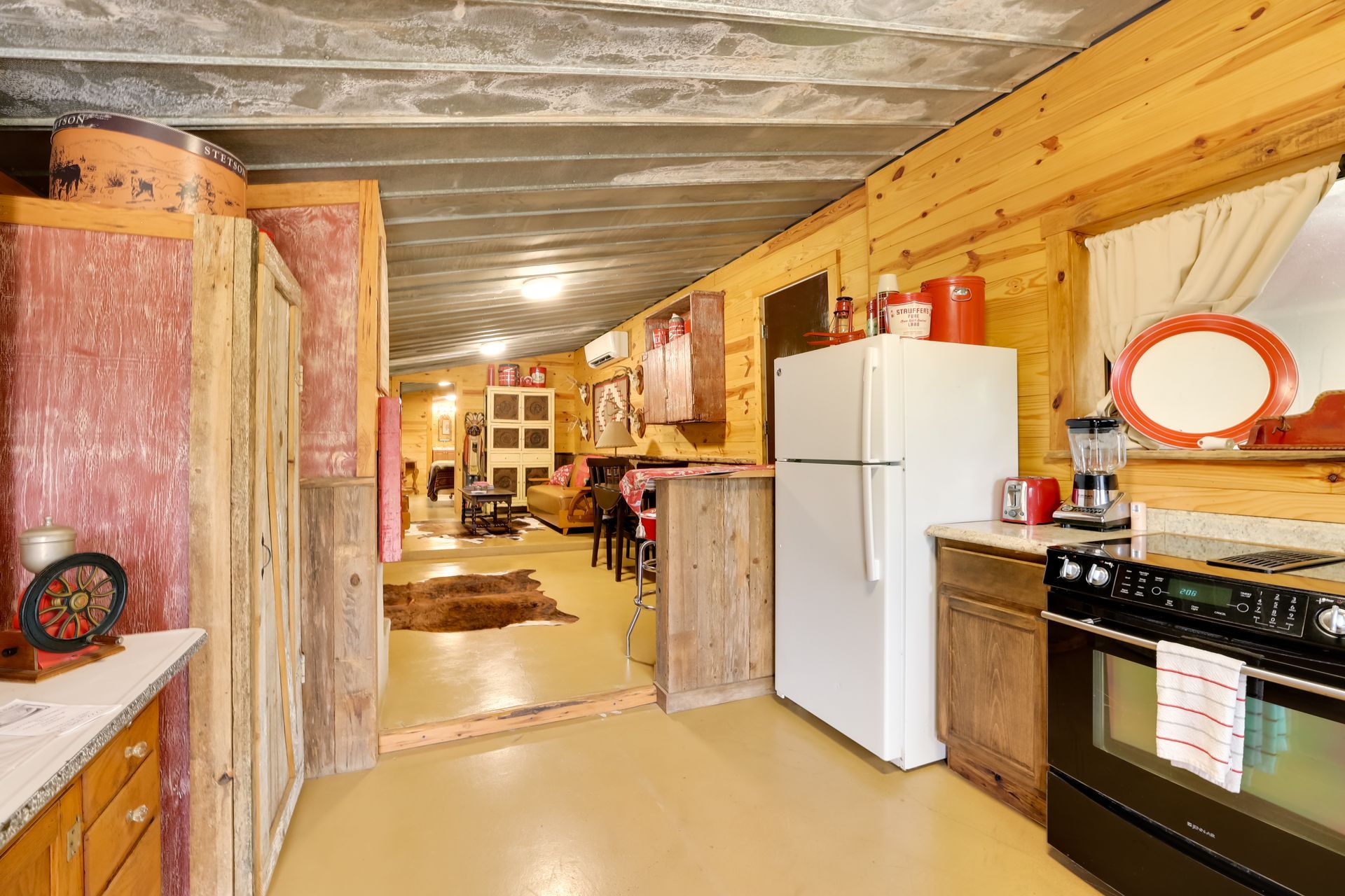 This beautifully decorated private Barndominium on 7 Canyons Ranch is a great option solo or added to reservations for your large group at 7 Canyons Ranch Lodge. It is separate from the lodge and is a five minute drive from the Main Lodge. The rooms are decorated with charming and authentic vintage western furniture and is reminiscent of the Rustic Western Lifestyle of the Cowboys and Ranchers from the 1950’s. The beautiful covered front porch just beckons you to come and stay for a while. There is a Living Room, a Dining area in the Kitchen. The bedroom has a Queen bed and a bath with a large shower. A Fully Equipped Kitchen rounds out this wonderful private unit. The wildlife wander this area frequently as the owner has made the water area at their home a haven for the multiple species that inhabit this magnificent 500 acre ranch. All bed and bath linens are provided. No TV or cell service in this valley. 2 night minimum except in December 3 night minimum Weekend Rates are $185.00 per night $50 cleaning fee Seasonal Rates may apply.