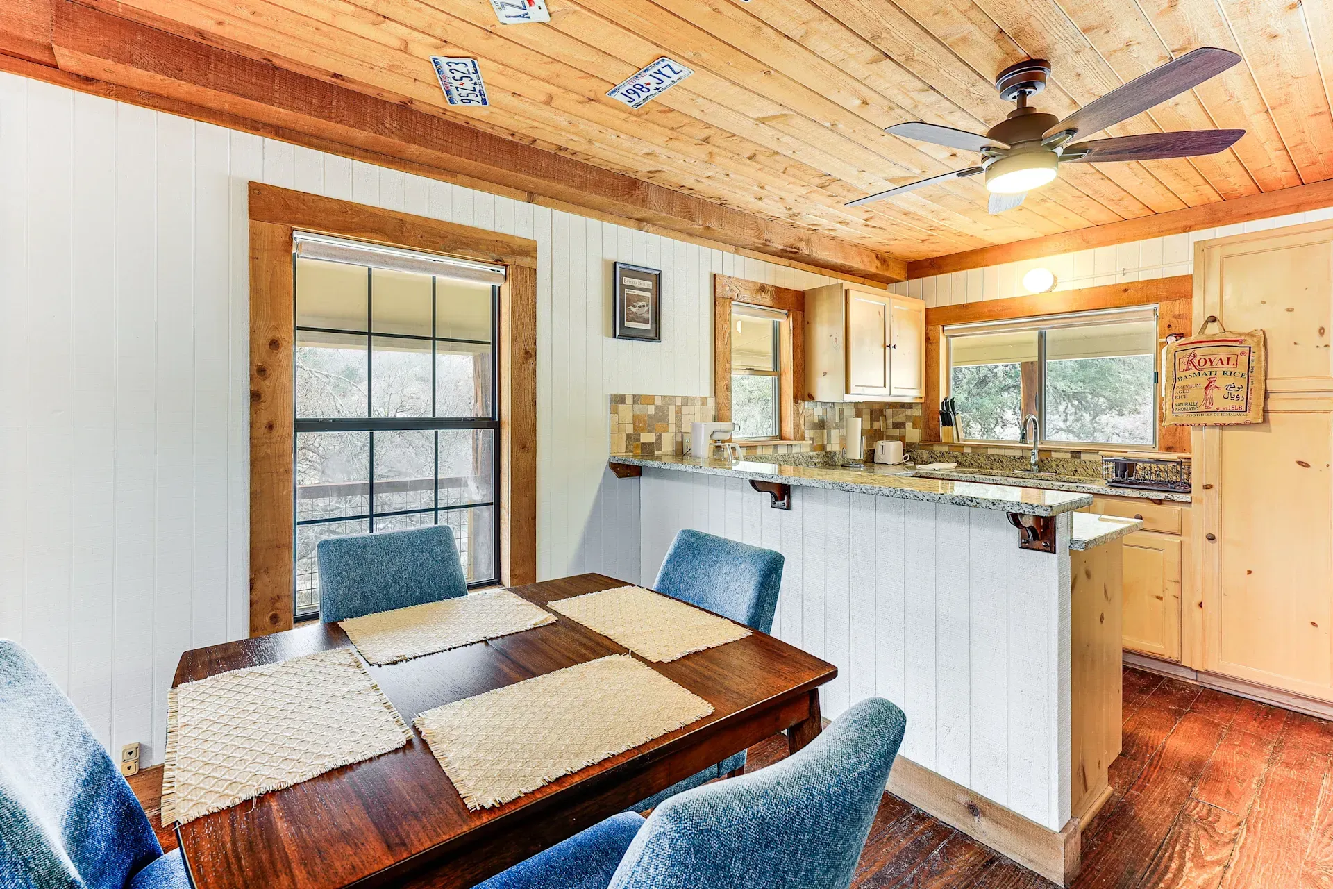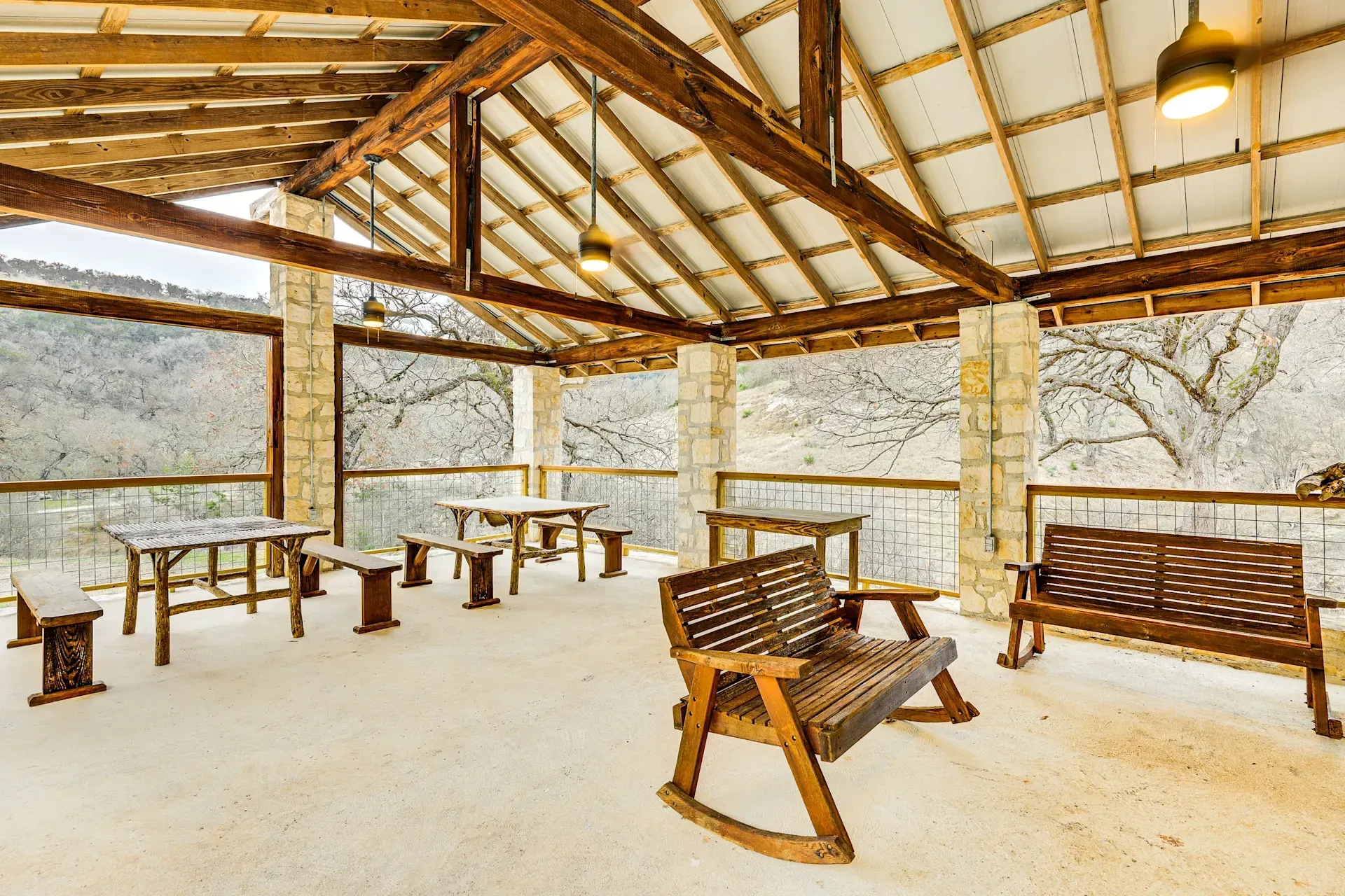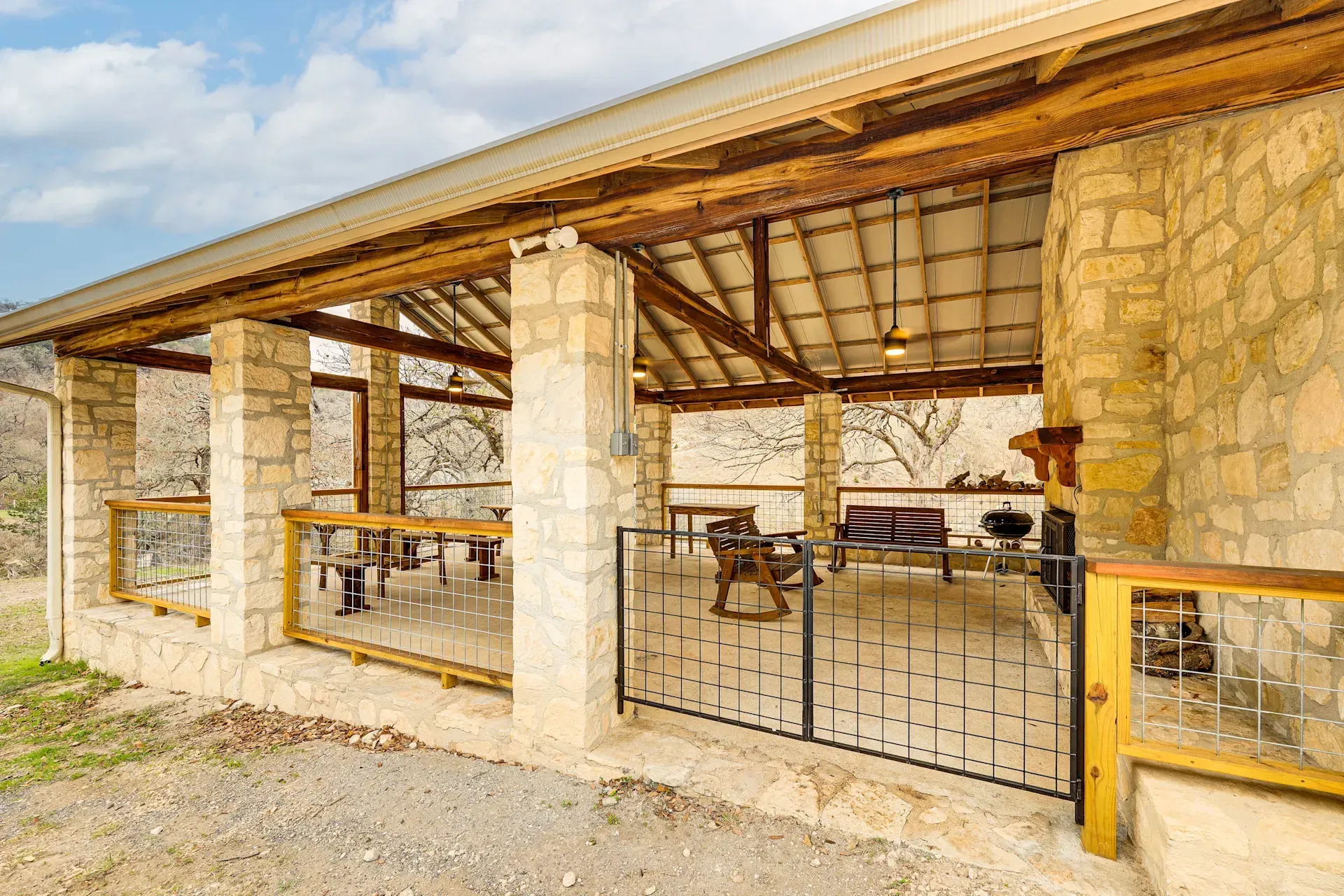 Nestled high above the breathtaking landscapes of the Texas Hill Country, The Overlook offers the perfect retreat for those seeking peace, adventure, and natural beauty. This charming 1-bedroom + loft, 2-bath cabin is tucked away within Seven Canyons Ranch in Tarpley, TX, providing a secluded escape from the hustle and bustle of everyday life. Whether you're looking to unwind or explore, this scenic vacation rental has something for everyone. Spend your evenings grilling and dining under the pavilion, sharing stories around the fire pit while stargazing, or cozying up inside by the warmth of the wood-burning stove. The property’s gated access and shared walking trails make it an ideal destination for nature lovers, while its rustic charm and modern comforts create a welcoming home away from home. Plus, with pet-friendly accommodations (for a fee) and stunning panoramic views, The Overlook invites you to fully immerse yourself in the beauty and tranquility of the Hill Country.