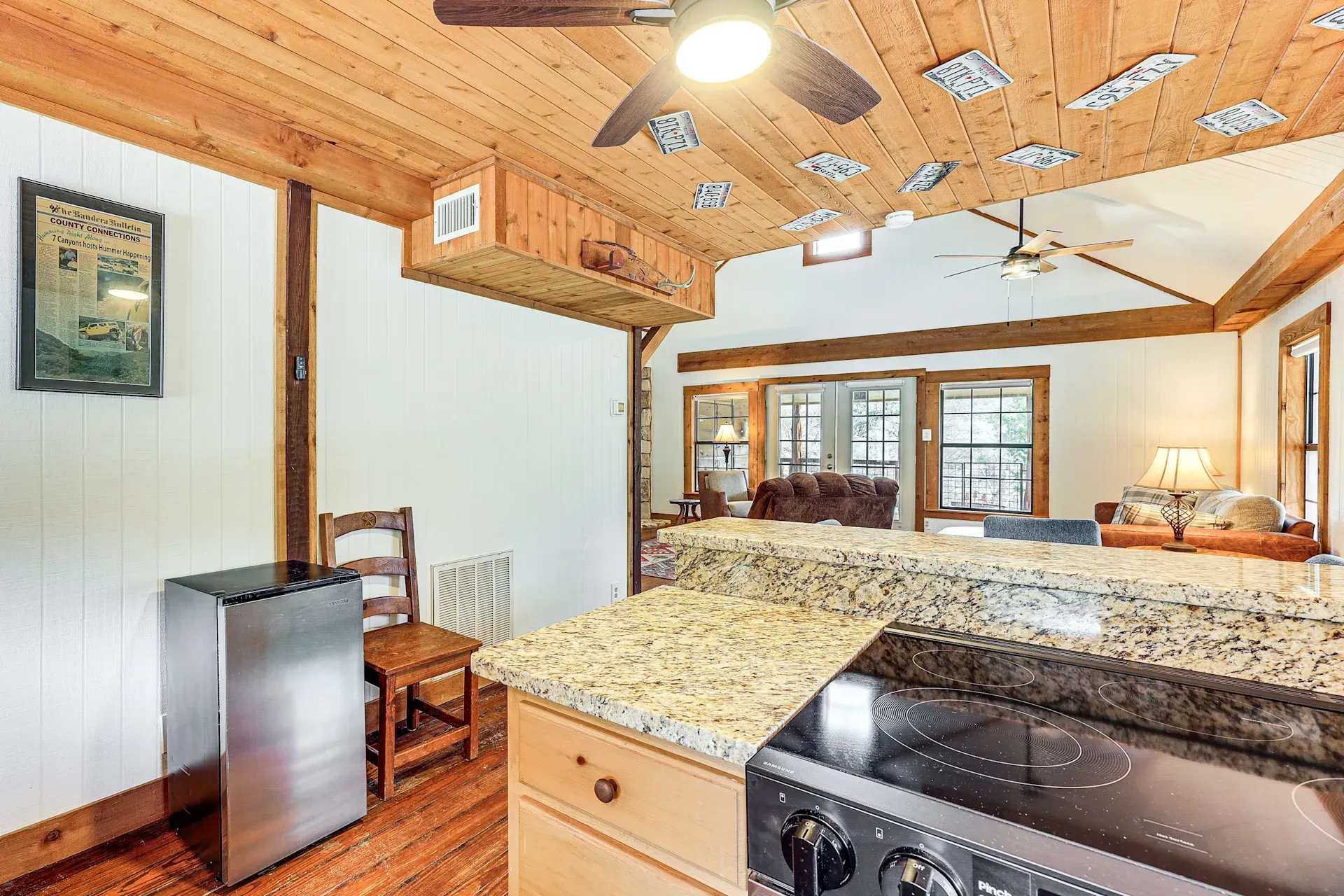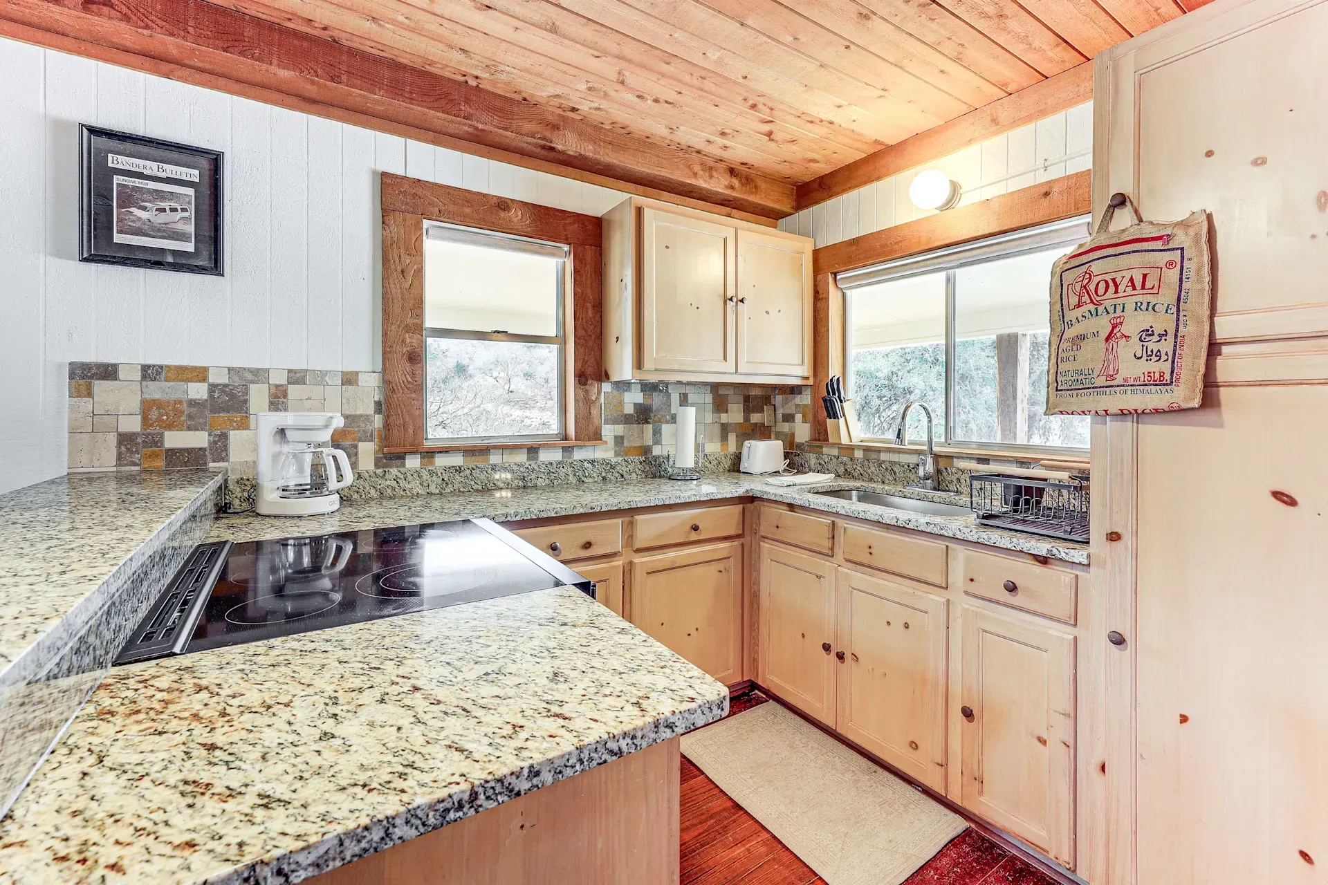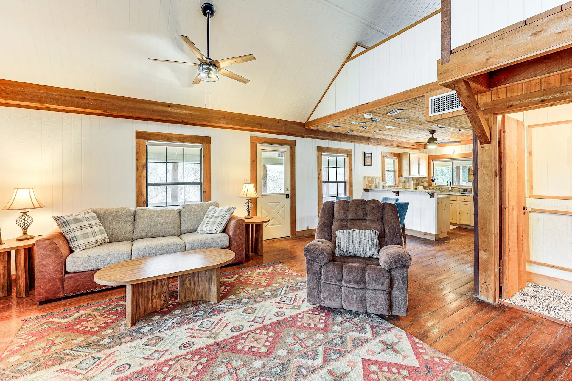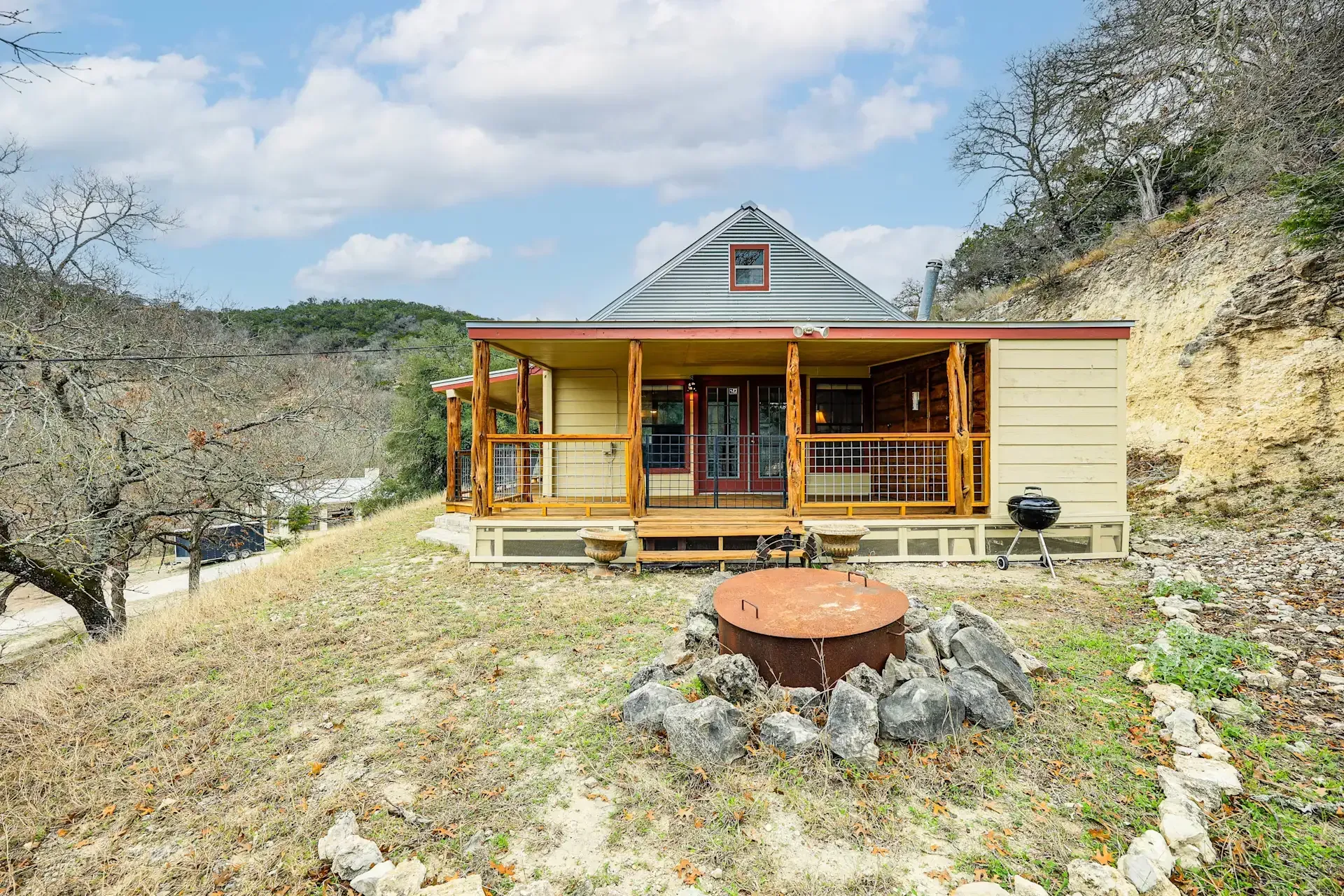 Nestled high above the breathtaking landscapes of the Texas Hill Country, The Overlook offers the perfect retreat for those seeking peace, adventure, and natural beauty. This charming 1-bedroom + loft, 2-bath cabin is tucked away within Seven Canyons Ranch in Tarpley, TX, providing a secluded escape from the hustle and bustle of everyday life. Whether you're looking to unwind or explore, this scenic vacation rental has something for everyone. Spend your evenings grilling and dining under the pavilion, sharing stories around the fire pit while stargazing, or cozying up inside by the warmth of the wood-burning stove. The property’s gated access and shared walking trails make it an ideal destination for nature lovers, while its rustic charm and modern comforts create a welcoming home away from home. Plus, with pet-friendly accommodations (for a fee) and stunning panoramic views, The Overlook invites you to fully immerse yourself in the beauty and tranquility of the Hill Country.