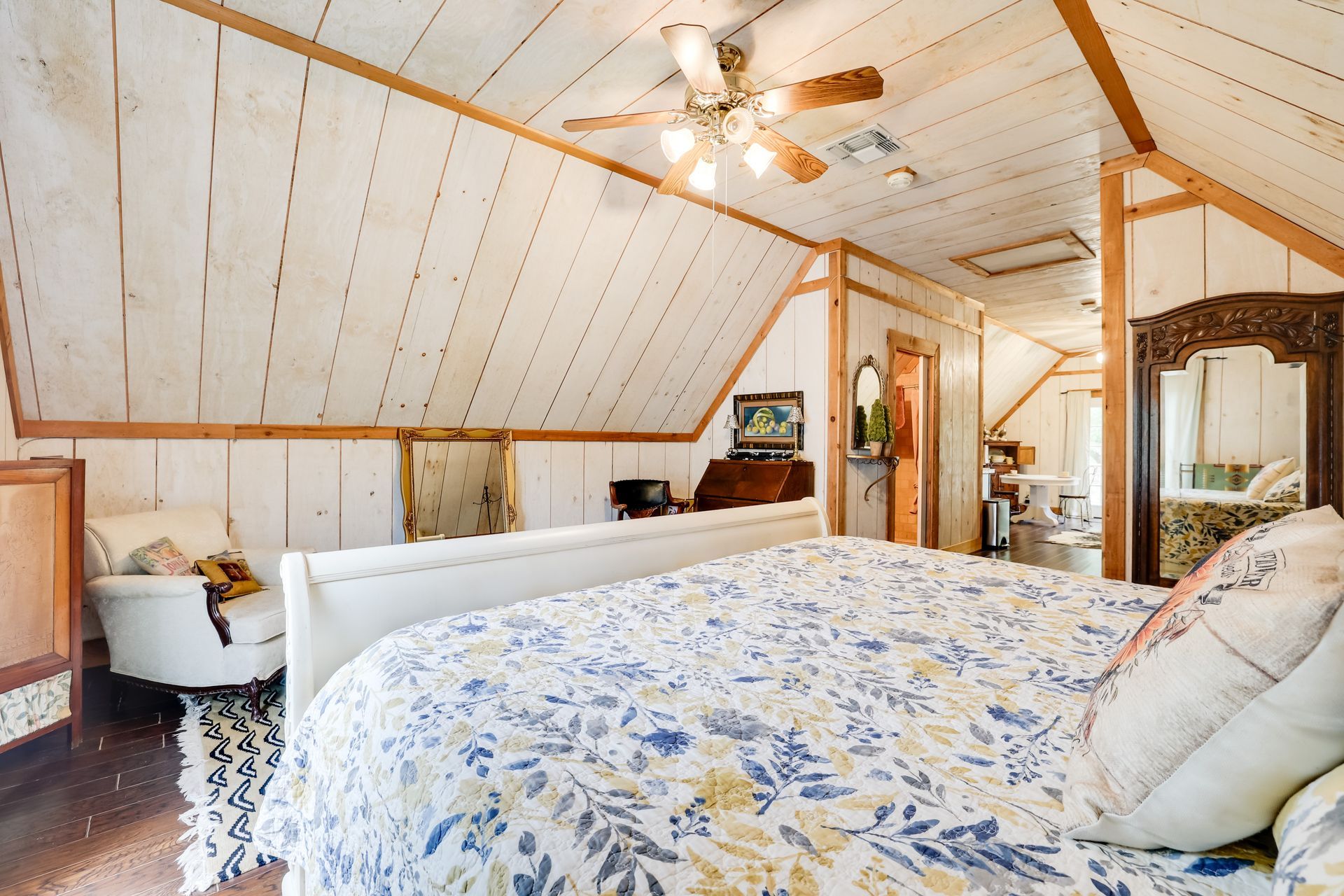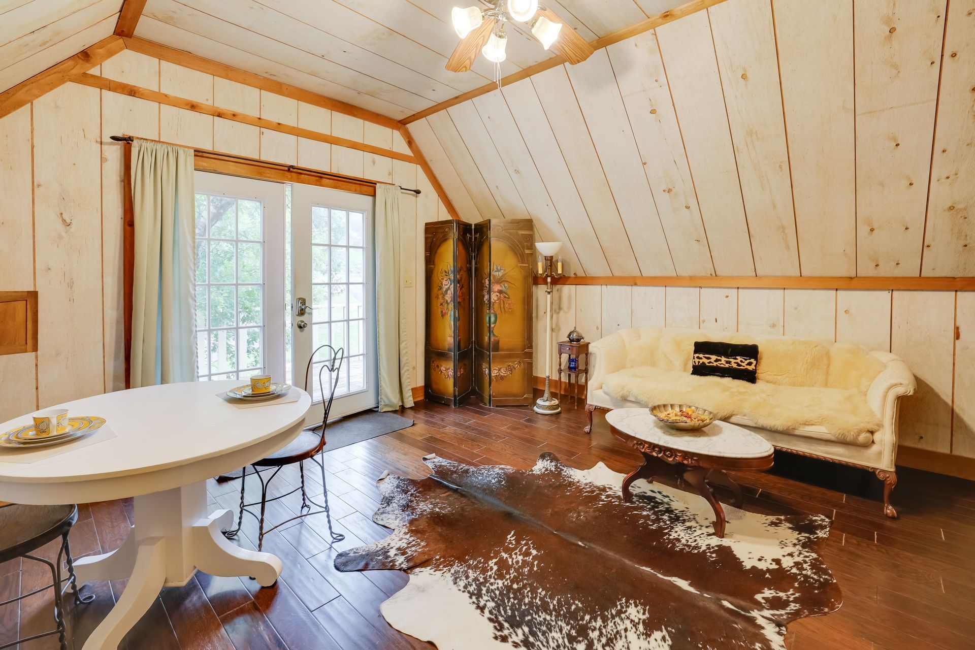 The Tree House is a beautifully decorated private apartment at the owner's home on 7 Canyons Ranch is a great option solo or added to reservations for your large group at 7 Canyons Ranch Lodge. It is separate from the owner's home and a two minute drive from the main Lodge. There is a sitting area, a dining area off the kitchen and a bath with a large shower. The bedroom has a King bed and a balcony. The wildlife wander this area frequently as the owner has made the water area at their home a haven for the multiple species that inhabit this magnificent 500 acre ranch. All bed and bath linens are provided. No TV or cell service in this valley. Bedroom with King bed and balcony Sitting area Dining table off kitchen Kitchen with mini refrigerator, four burner range top, microwave and coffee maker, pots and pans, utensils, flatware, dishes and glasses Small deck with seating and electric grill 2 night minimum except in December 3 night minimum Weekend rates are $185.00 50 cleaning fee Seasonal Rates may apply